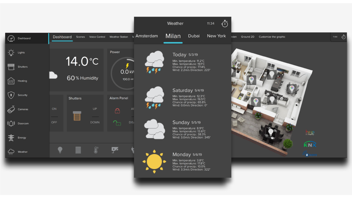 Multi-Platform Visualisation: Control and monitor your building through a fully customisable interface available on tablets, smartphones, and PCs, ensuring consistent access across devices.